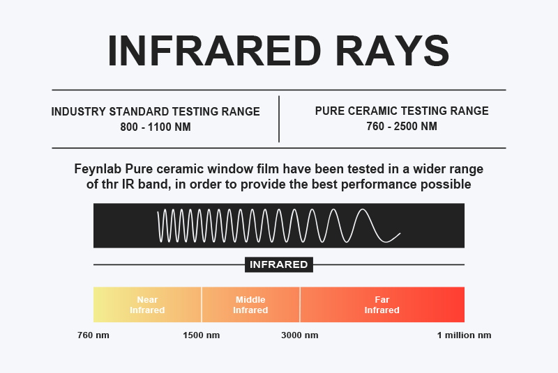 Infrared rays are the primary source of heat entering through glass surfaces. While standard window films are typically tested only within a limited infrared range of 800–1100 nm, BuildTech’s Pure Ceramic Window Films are engineered and tested across a much broader spectrum—from 760 nm up to 2500 nm.